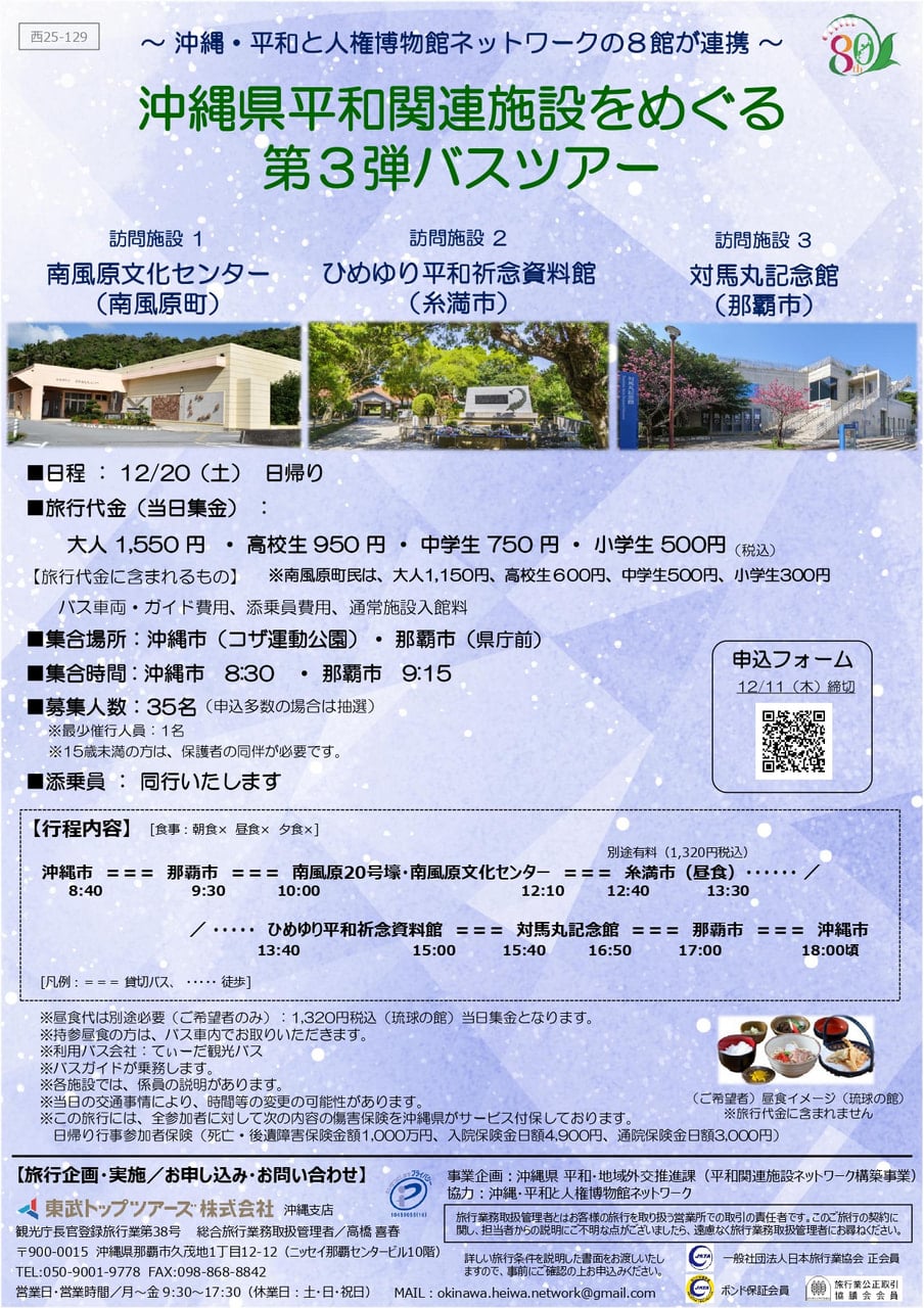 戦後80年平和祈念事業(平和関連施設ネットワーク構築事業)の平和関連施設をめぐるバスツアーの第3回目の募集がスタートしています!(お申し込み多数の場合は抽選となります)